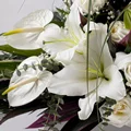 باکس گل شامل 12 شاخه آنتوریوم، 2 شاخه لیلیوم، 9 شاخه رز هلندی، 1 دسته ژیپسوفیلیا به همراه تزئینات و برگآرایی میباشد. با ارتفاع 70 و عرض 55 سانتیمتر.