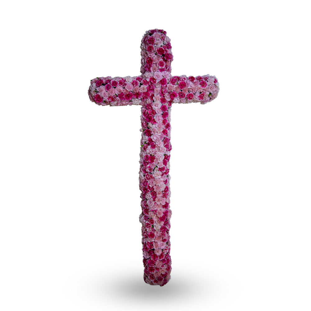 صلیب شامل 25 دسته میخک و با طول یک متر میباشد (امکان تعویض رنگ گلها وجود دارد، لطفاً با فروشگاه تماس حاصل فرمایید).