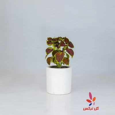 گیاه بونسای کاج لاوسون به همراه گلدان سرامیکی سفید؛ با ارتفاع 35 سانتیمتر.